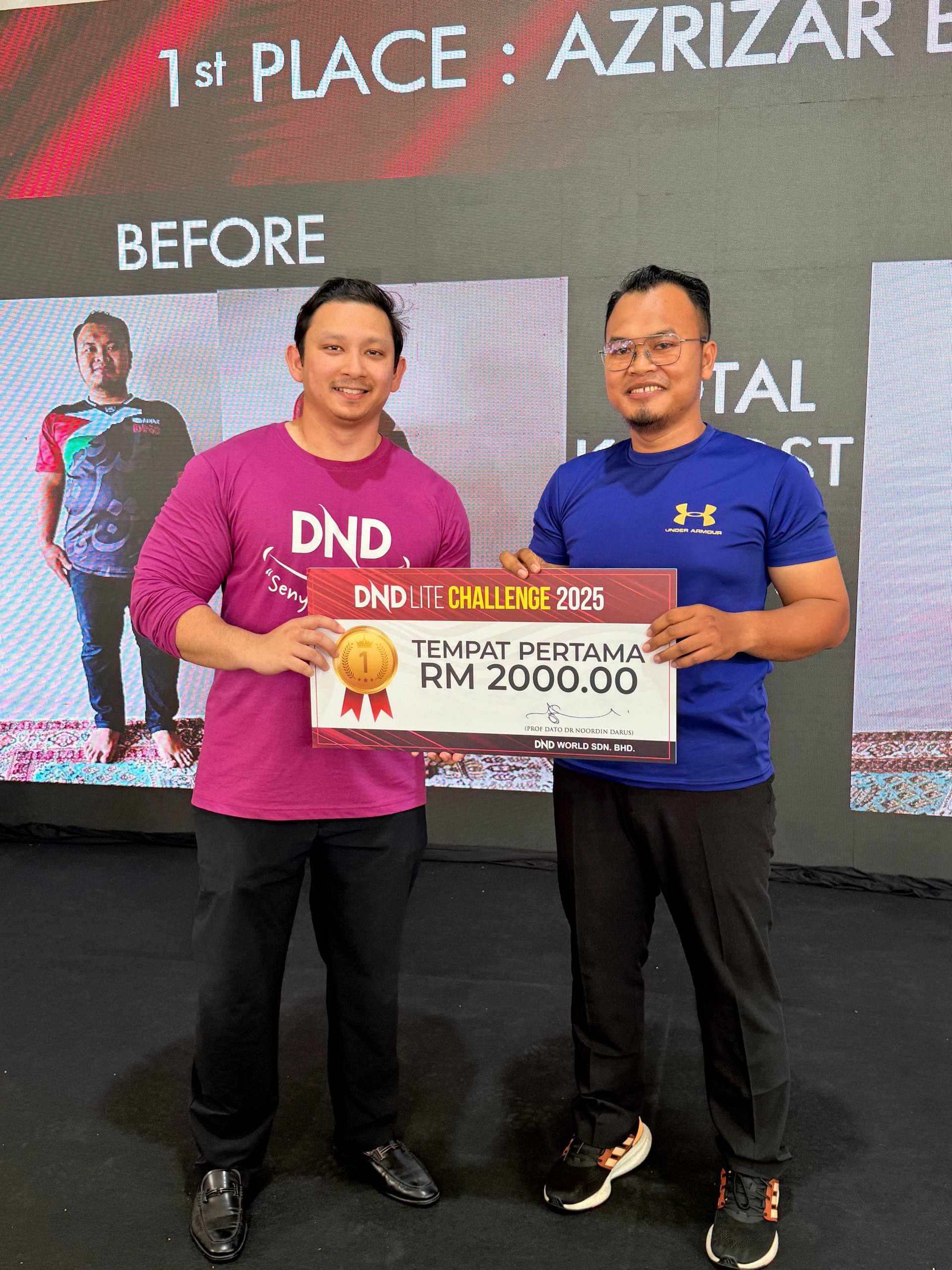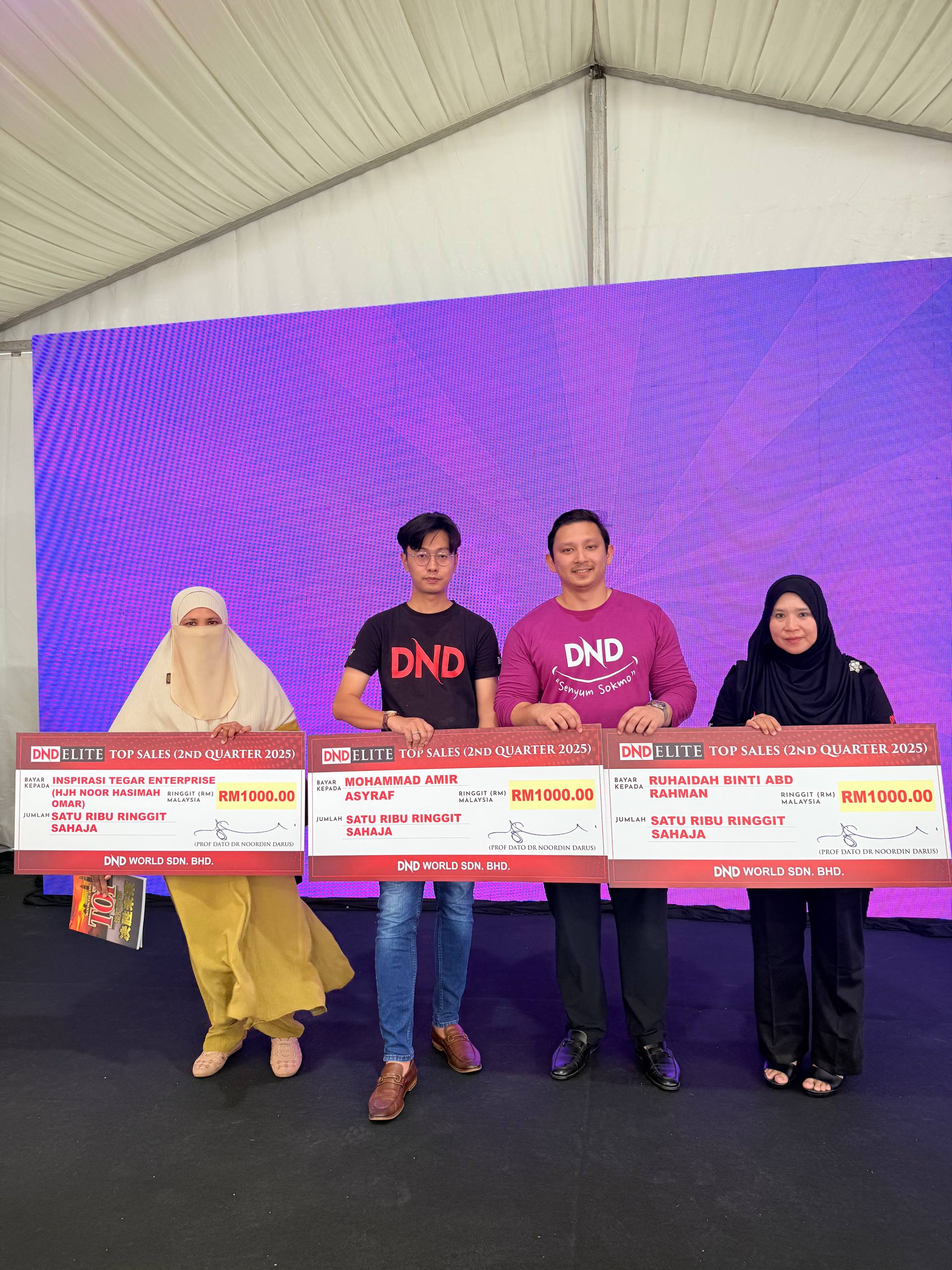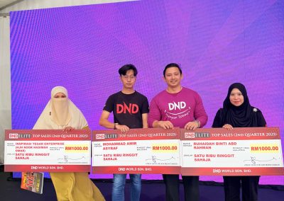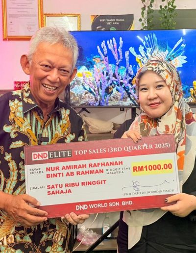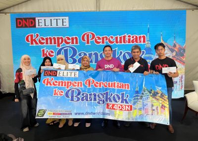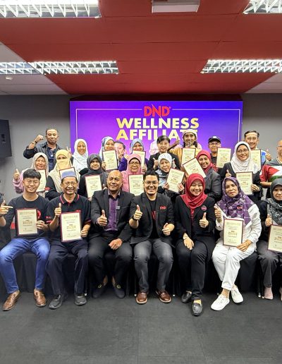 DND ELITE TRIP – DANANG, VIETNAM (24-27 OKTOBER 2025) DWA – DND WELLNESS AFFILIATE (20 SEPTEMBER 2025) DND RETREAT 2025 – TERENGGANU TRIP (2-4 OGOS 2025) KARNIVAL DND JOM SIHAT (26 JULAI 2025) DND ELITE LEADERSHIP PROGRAM & JAMUAN RAYA (19 APRIL 2025) MAJLIS BERBUKA PUASA BERSAMA ANAK YATIM (23 MAC 2025) SUPER BRAND HEALTH AWARD (21 FEB 2025) “DND ELITE – DINNER WITH DND (8 FEB 2025) “DND FAMILY DAY & ANNUAL DINNER – “SERASI BERSAMA”, PORT DICKSON (11 JAN 2025) DND ELITE LEADERSHIP PROGRAM (14 DEC 2024) DND ELITE TRIP- DUBAI (26-30 Nov 2024) DND MOXA LAUNCHING (11 Nov 2024) DND GOODBYE 3 SERANGKAI HQ PJ – 26 Oktober 2024 DND ELITE LEADERSHIP PROGRAM – 17 Ogos 2024 “DND MAI PENANG”- 2-5 OGOS 2024 “GOODBYE 3 SERANGKAI” AT HQ DND PJ – 29 JUN 2024 DND ELITE LEADERSHIP PROGRAM – 4 MAY MAJLIS IFTAR BERSAMA AL RAHMANIAH – 1 APRIL 2024 DND ELITE – DINNER WITH DND 2024 AT DE.WAN BSC BANGSAR NONA SUPERHERO AWARDS 2023 – GRAND MILLENIUM HOTEL, KL MALAM ANUGERAH DND VAGANZA 2023 AT DE.WAN BSC BANGSAR DND ELITE LEADERSHIP PROGRAM 2023 DND ELITE – JAKARTA RETREAT 2023 DND JOM LANGKAWI 2023 KARNIVAL JOM SIHAT 2023 MALAM ANUGERAH DND WORLD 2022, Sek 7, Shah Alam DND ELITE “PEARL LEADERSHIP” Di DND World, PJ “KARNIVAL JOM SIHAT DND” Di DND World, PJ “DND LET GO & FEEL GOOD RETREAT 2022” Di Kuantan “SIHAT SEPANJANG HAYAT-Talk!” Di Brunei Taklimat “MEMPERKASAKAN KESIHATAN- Di Dalam Perlaksanaan Tugasan- MPHLG”. Di Fairfield, Bintulu. “Event: Booster Kewangan & Kesihatan, Semua Dari Rumah”. Di DND World, P.J “Majlis Rumah Terbuka Aidilfitri DND”. Di DND World, PJ Aktiviti Kelab Cinta – “Misi Pemberian Juadah ke Gelandangan” Di sekitar Kuala Lumpur Pemenang-pemenang Kempen “Lucky Draw 2022” Aktiviti berbuka puasa kakitangan pekerja DND Sesi penggambaran sempena Hari Raya 2022 DND CSR – Pertolongan Mangsa-mangsa Banjir.